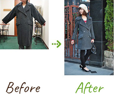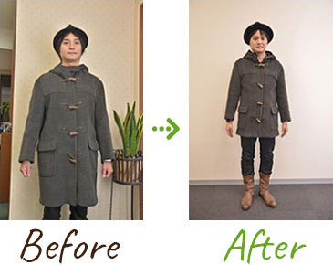 大きいサイズのコートを、ジャストフィットのコートにチェンジ!身幅や着丈、袖丈など、大幅に詰めました。着れなかったコートがおしゃれなコートに生まれ変わりました。