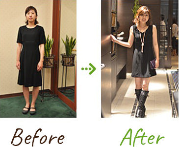 使わなくなったフォーマルウェアをドレスワンピに。着丈詰めと脇幅詰め、袖をノースリーブにして、衿元をVネックに。あっと驚くほど華麗に変身します!