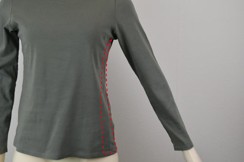 脇下はそのままでウエスト幅から裾幅まで自然に詰めます。