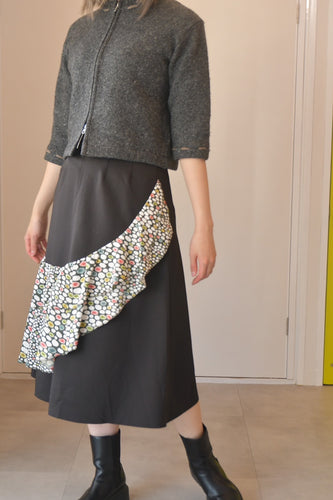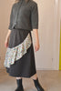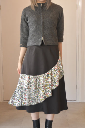 シンプルなスカートに異素材合わせのほど良い存在感で、