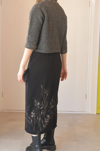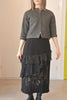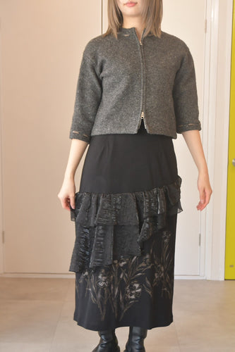 シンプルなスカートに異素材合わせのほど良い存在感で、