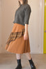 シンプルなスカートに異素材合わせのほど良い存在感で、