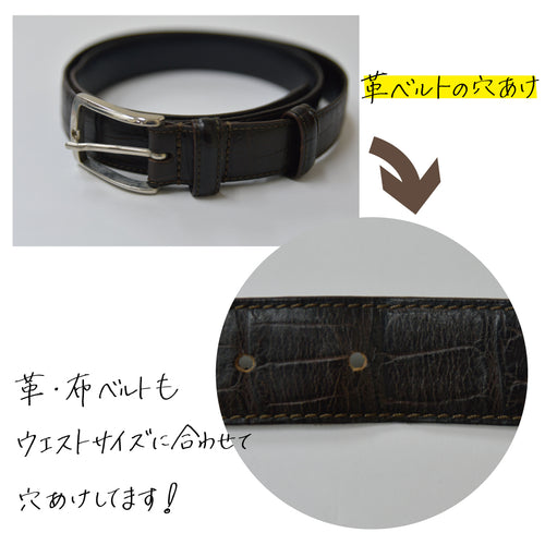 革・布ベルトもウエストサイズにあわせて