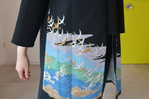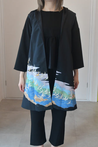 留袖からリメイクしたカーディガン。