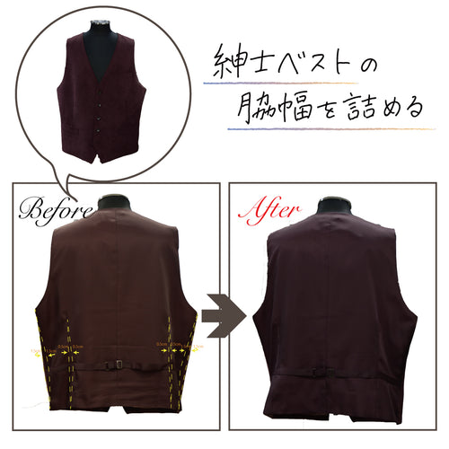 紳士ベストの脇幅を詰める