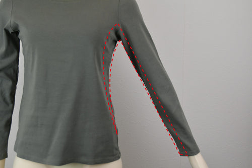 裾幅は詰めずにアームホールから袖口まで自然に詰めます。