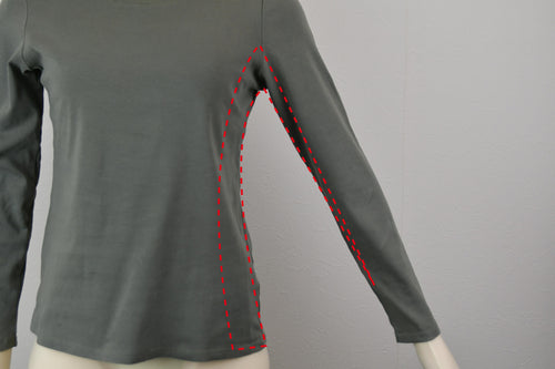 袖口幅は詰めずにアームホールから裾幅まで自然に詰めます。