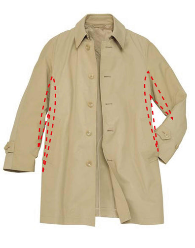 袖口幅と裾口幅は詰めずにアームホールにかけて自然に詰めます。